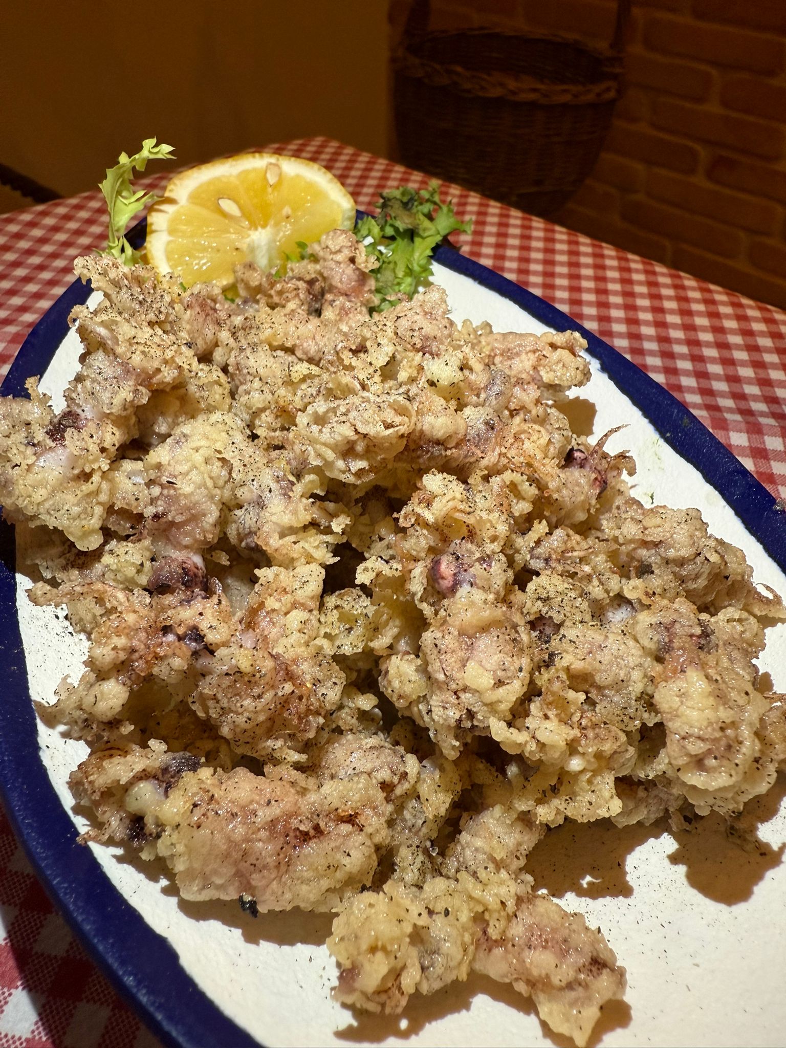 Calamarelle,olio girasole,sale,farina,pepe,sale e limone. (4,5,8,... visualizza altro